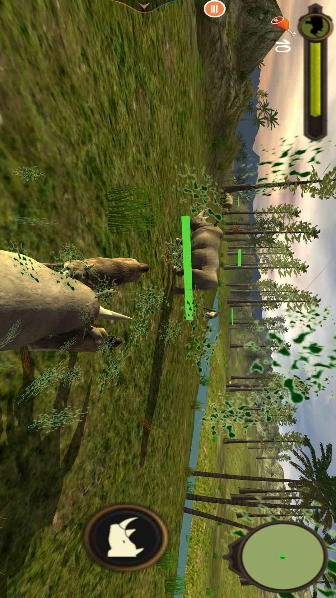 1、扮演犀牛角色。玩家不再是人,而是一只强壮的犀牛。这个设定,让体验变得很新鲜,这一点,小编深有体会。视角变了,感觉完全不同,仿佛真的进入了丛林深处,这种代入感很强。
