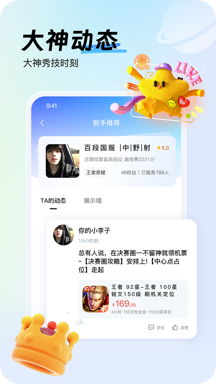 2. 支持王者荣耀及英雄联盟手游等游戏。和平精英等需求代练项目也能找到。覆盖范围广,满足不同玩家的游戏口味。小编见过很多同类游戏都不如这个。