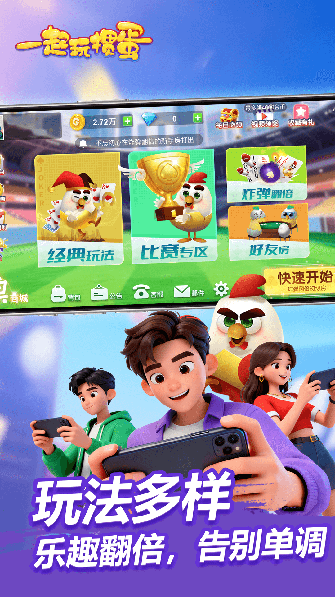 你是不是也经常在饭局上听到“饭前不掼蛋,等于没吃饭”这句话?现在不用再等聚会了,手机里装上一起玩掼蛋腾讯版,随时随地都能开局!这款由腾讯出品的正宗江苏掼蛋手游,不仅还原了街头巷尾最地道的玩法,还加入了智能匹配、好友房、每日任务等贴心功能,让老玩家找回熟悉的味道,新玩家也能快速上手。不管你是想打发通勤时间,还是和老家的亲戚线上切磋,它都能满足你。今天咱们就来好好聊聊,为什么这款一起玩掼蛋腾讯版,成了越来越多人手机里的“电子下饭菜”。