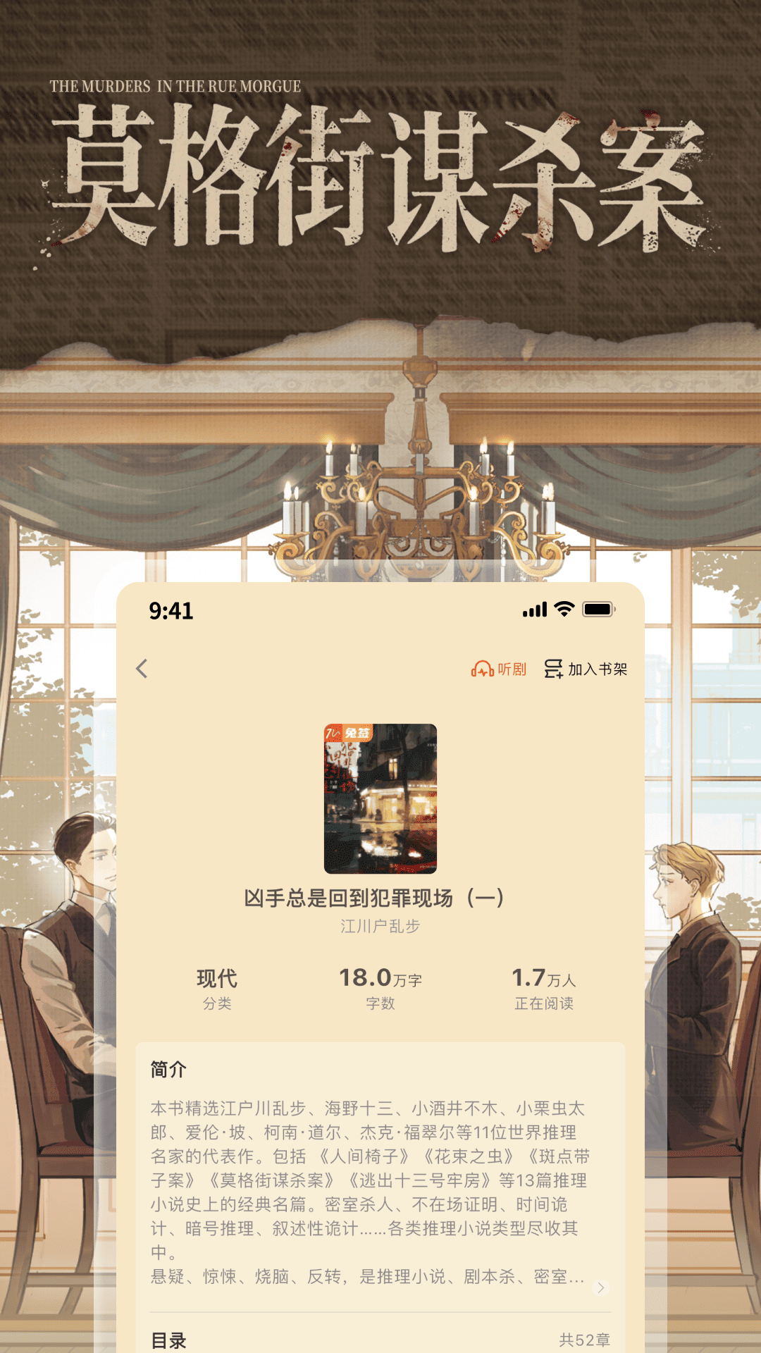 市面上听书APP不少,但能让你听完一集后盯着进度条发呆三分钟、翻评论区找线索、甚至重听某句台词五遍确认伏笔的,真不多。兔U不一样——它从诞生起就带着一股“较真劲儿”:每部广播剧都按影视级标准做音效设计,雨声是实录江南梅雨季的屋檐滴答,刀鞘出鞘声请来专业冷兵器老师傅现场采样,连角色转身时衣料摩擦的窸窣都分左右声道处理。这不是炫技,是想让你闭上眼,真的“看见”故事。更别说那13个经典诡计篇章,从“凶手总是回到犯罪现场”到“记忆会撒谎”,每个标题都不是噱头,而是编剧团队啃了上百本推理小说、访谈十多位刑侦顾问后熬出来的硬核骨架。你听到的不是声音表演,是一整套逻辑闭环的声绘迷宫。