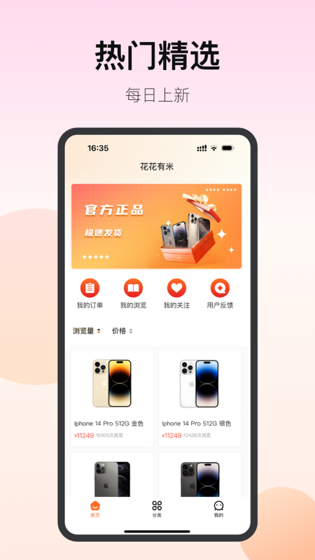 花花有米是个专门买东西的手机软件。主要卖 3C 数码和小家电,还有些权益卡券能领。供应链靠谱,售后响应快,用户购物更省心。东西是正品,值得信任。软件功能很实用。