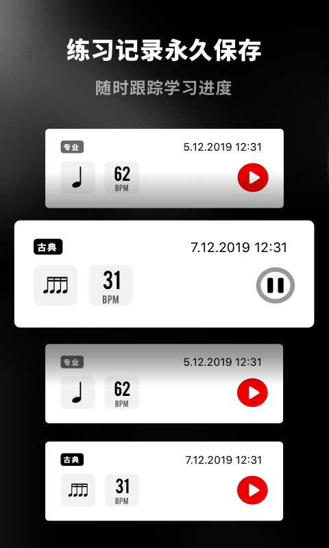 1、精准节拍生成。软件里的节拍声音,说起来挺稳的,不会忽快忽慢。乐师参与过设计,保证出来的节奏科学准确。用户跟着练,不容易跑调。
