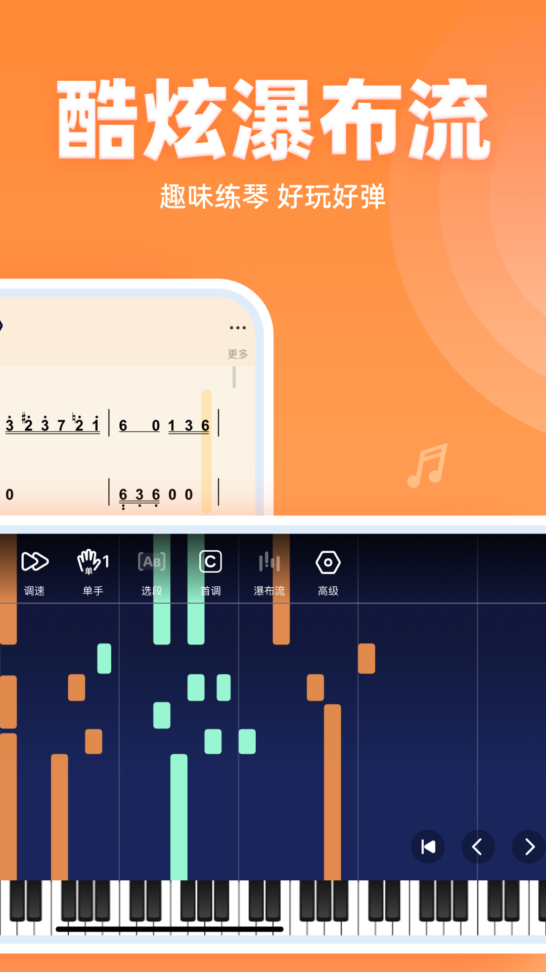 2、双手简谱展示。专门针对初学者设计的双手谱,左右手分工明确,用户看着谱子弹琴的时候,不容易搞混手指位置,练习效率更高。