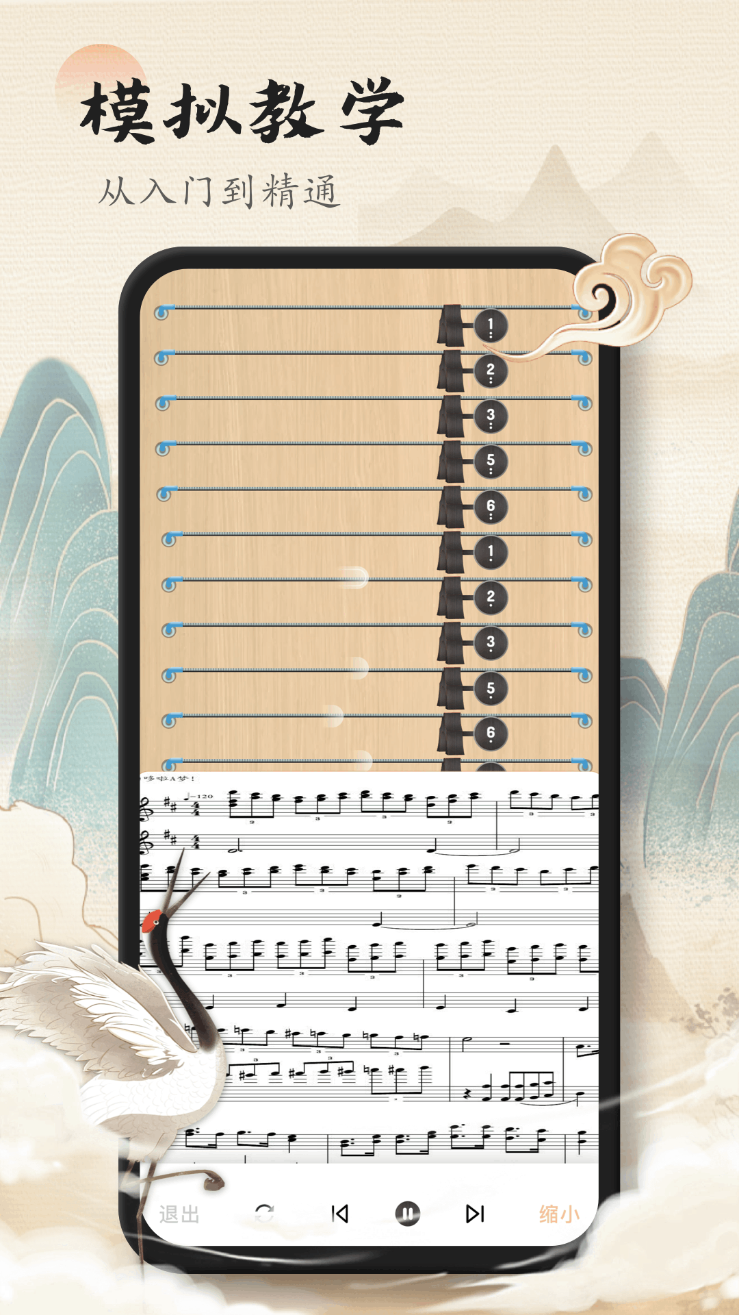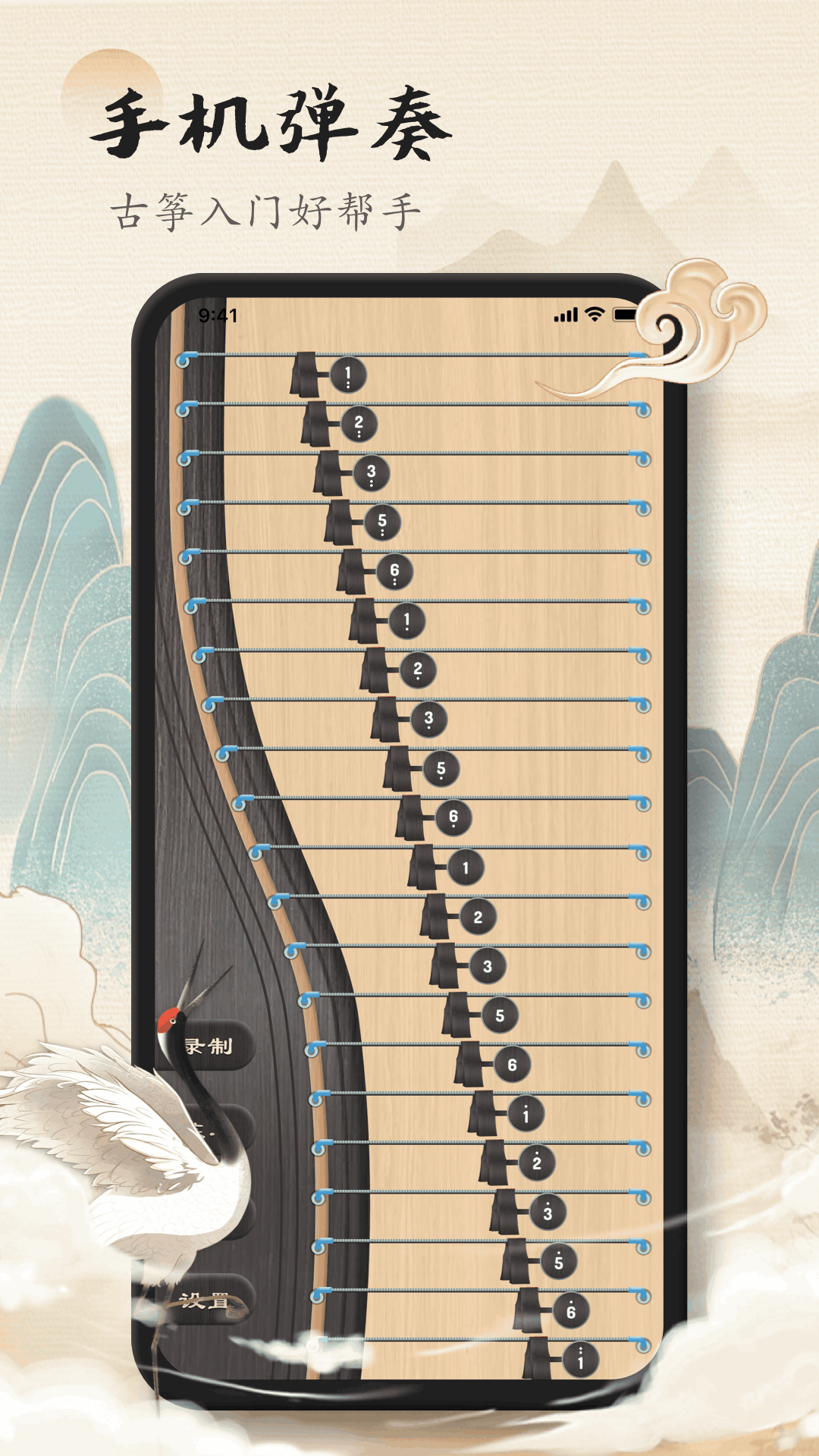 2、弹奏模拟功能做得挺真实,还原了古筝的音色。用户在手机上点屏幕,就能听到对应的声音,还能录制下来分享,秀出自己的风采,感觉就像真的在弹一样。