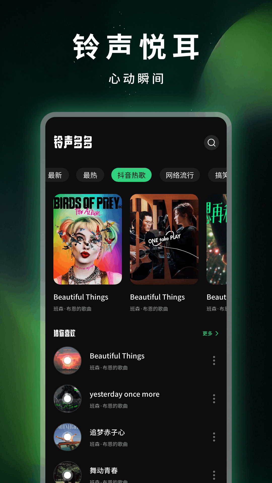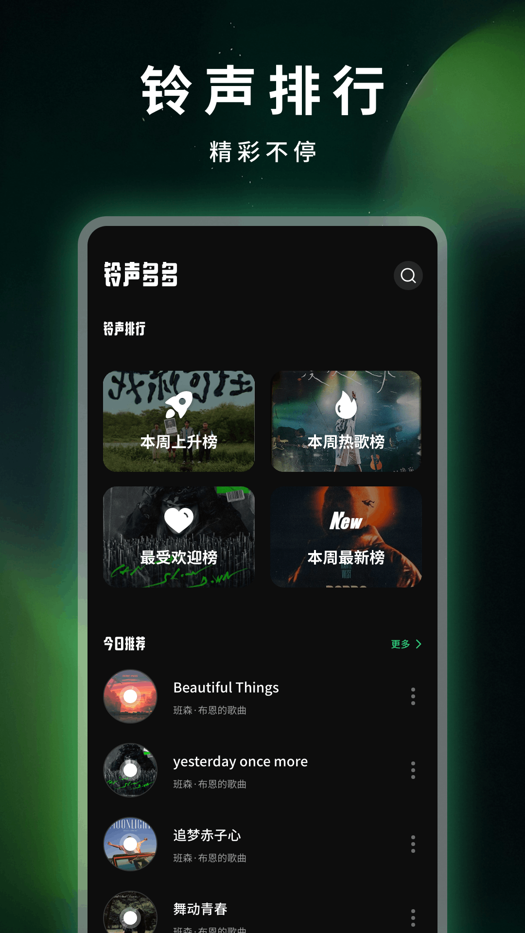 1、应用里汇聚了海量的铃声资源,不管你喜欢什么风格,都能在这里找到合适的曲目,小编试听了一些,分类做得挺细致,找歌不费劲,快速定位心仪铃声没问题。