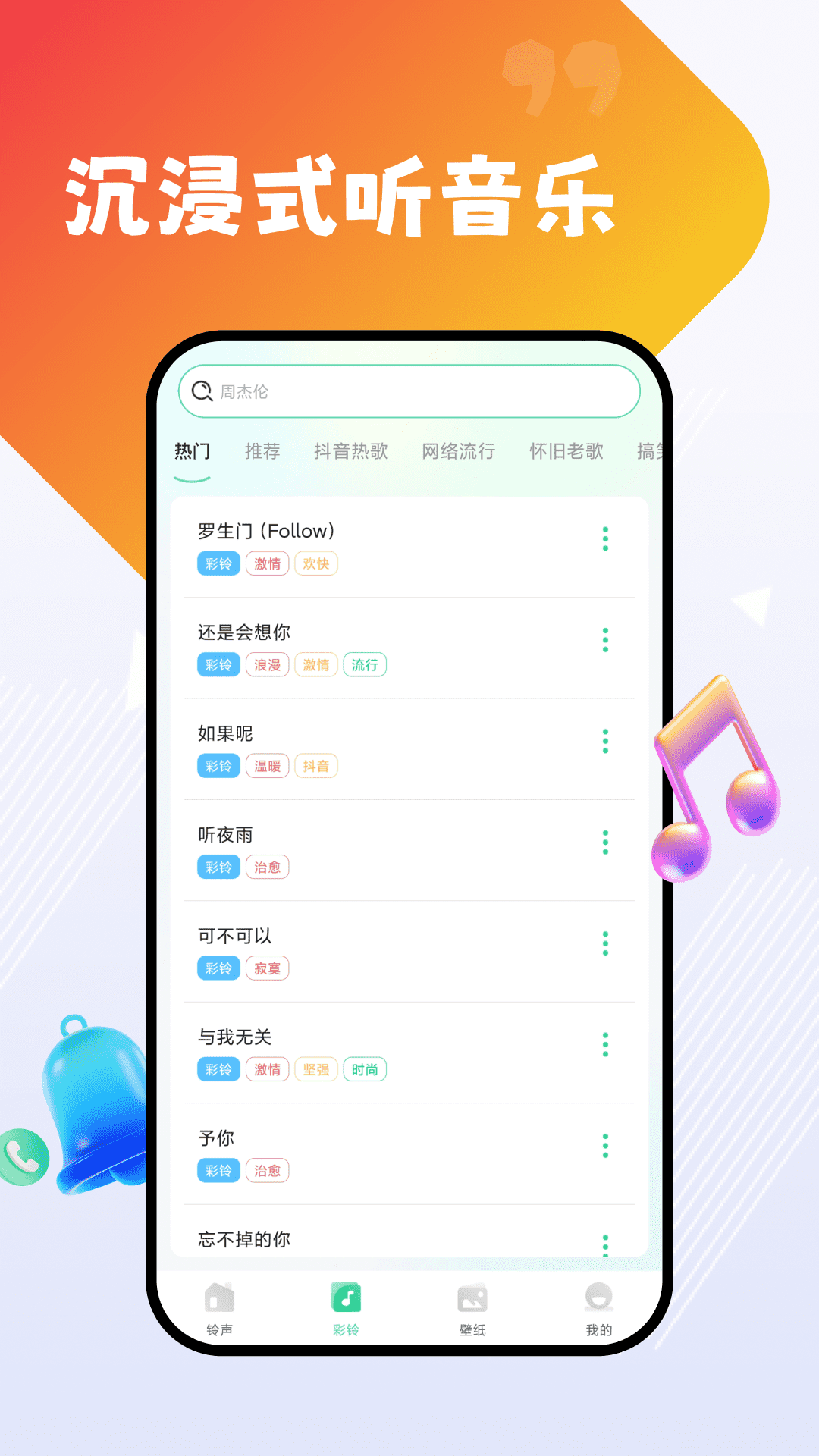 铃声听是一款专门给手机提供铃声服务的软件。它里面有很多免费的音乐资源,用户能找到流行的歌曲或者搞笑的声音。核心就是让大家轻松换个好听的铃声,操作也不麻烦。本站提供下载,方便大家直接获取。