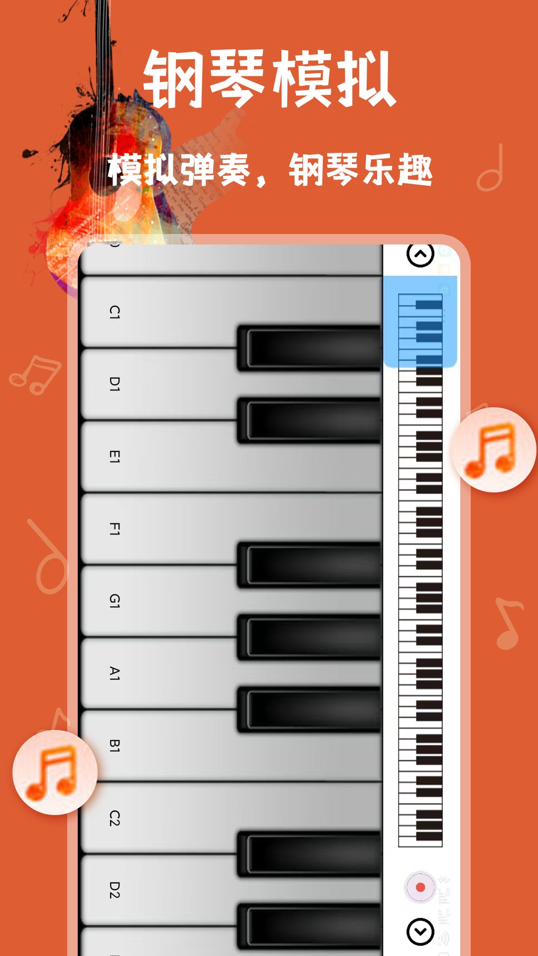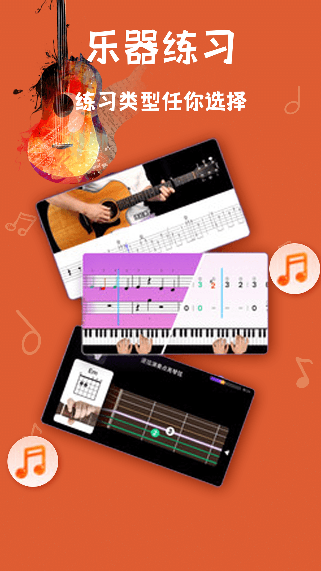 1、模拟弹奏支持线上练习,手指触碰屏幕就能发声,效果接近真实吉他,用户随时都能拿出来练手,不用背着真琴到处跑,这点挺方便,省了买琴的钱。