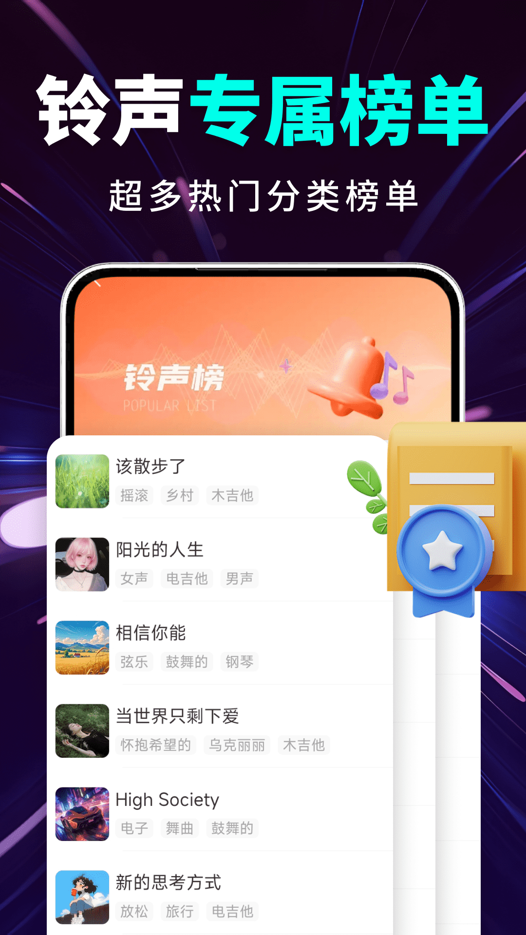 1、适合人群。这个应用,适合想要换铃声的大众用户。不管你是年轻人,还是长辈,都能用。操作界面不复杂,眼神不好的长辈也能看清,不费力。