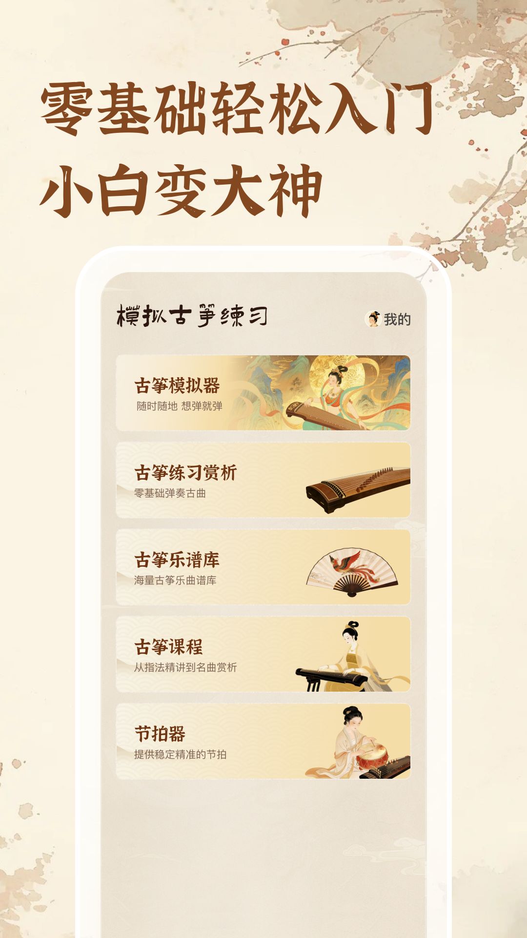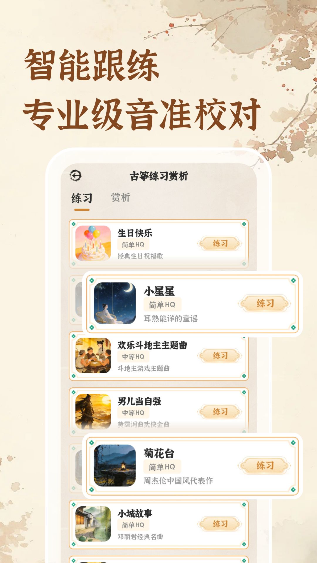 古筝模拟练习核心是方便练习。主要优势是音色好曲谱多。适合大众用户下载安装。想学古筝就用这个软件。核心价值比较明确。
