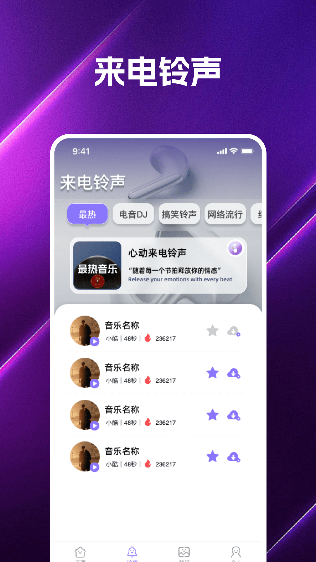 1、海量铃声库。这里收录了超多热门个性化来电铃声,用户想找的歌基本都能搜到,不用到处去翻网页下载,省事儿,找歌很方便,资源特别多。