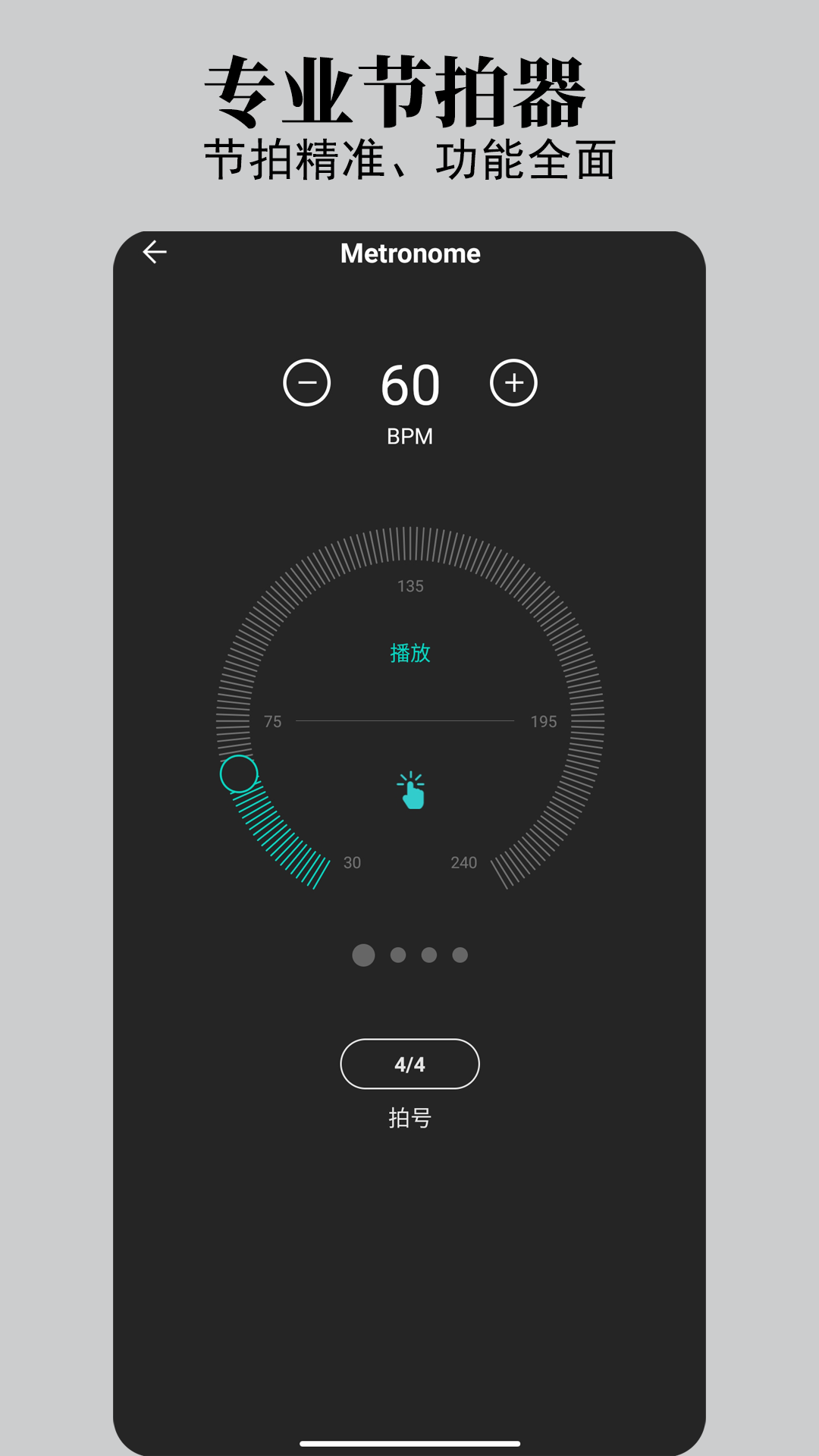 2、内置节拍器。节奏感不好的人需要这个。它能打出稳定的拍子,帮你练习速度。小编觉得,这对练基本功的人来说,是个必不可少的东西。没有节奏的音乐,就像走路没有步子,会显得很乱。