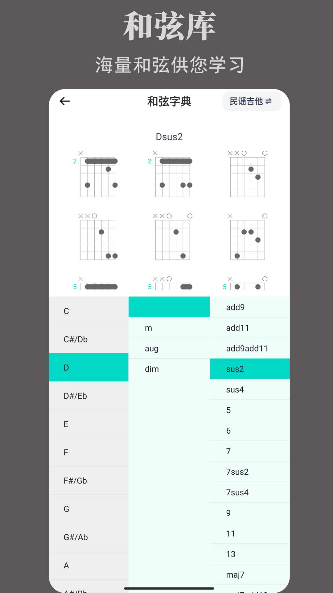 2、多种调弦法。除了标准的调法,它里面还藏了不少特殊调弦。你要是想玩点不一样的风格,这里面基本都能找到对应的模式,不用自己去算音高。这对于喜欢尝试不同音乐风格的用户来说,是个很贴心的设计。