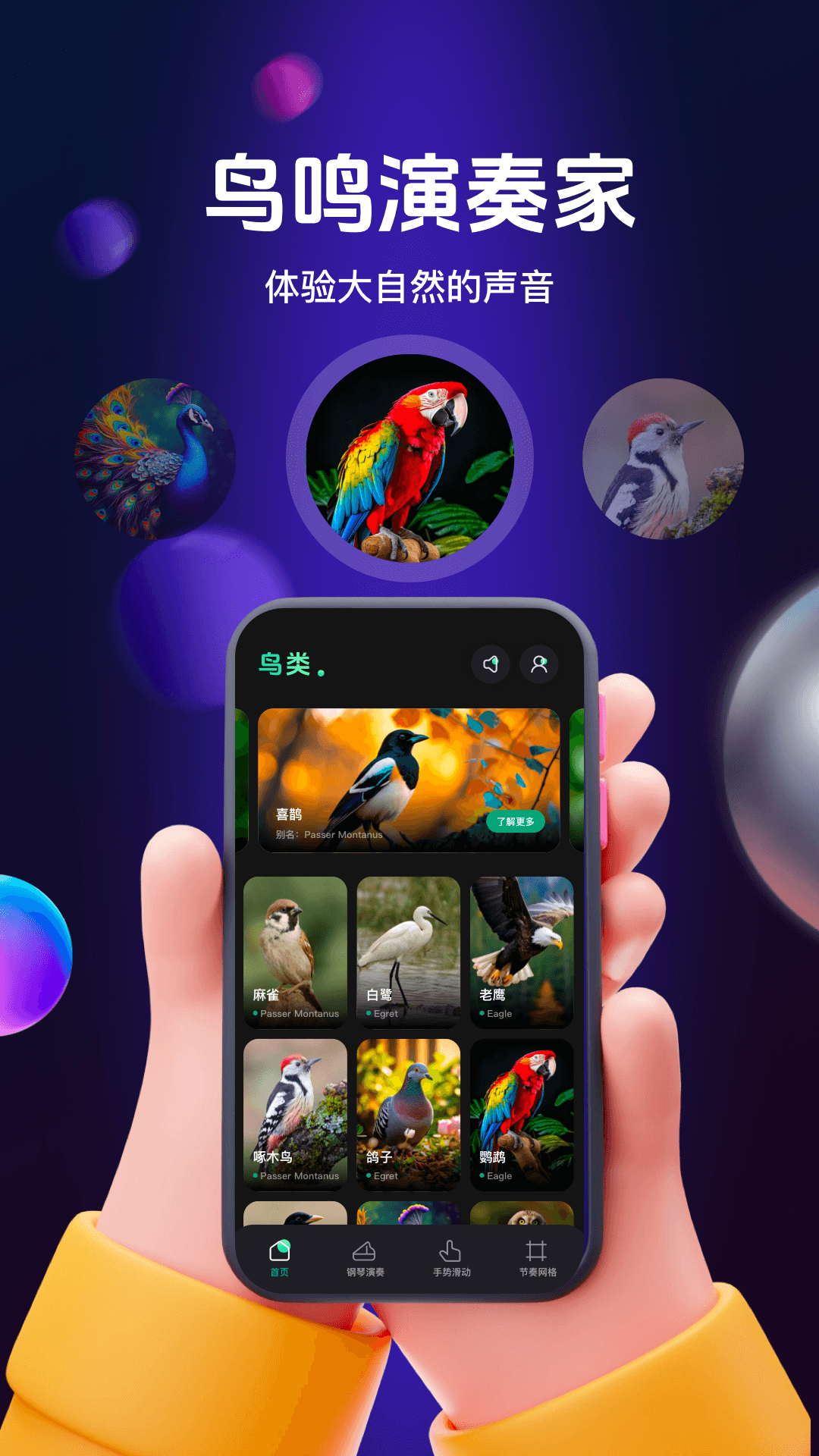 1、手势演奏模式。操作方式很简洁,用户用手势就能参与鸟鸣音乐的创作,过程舒适,不需要复杂的技巧,小编觉得上手很快,老人小孩都能用。
