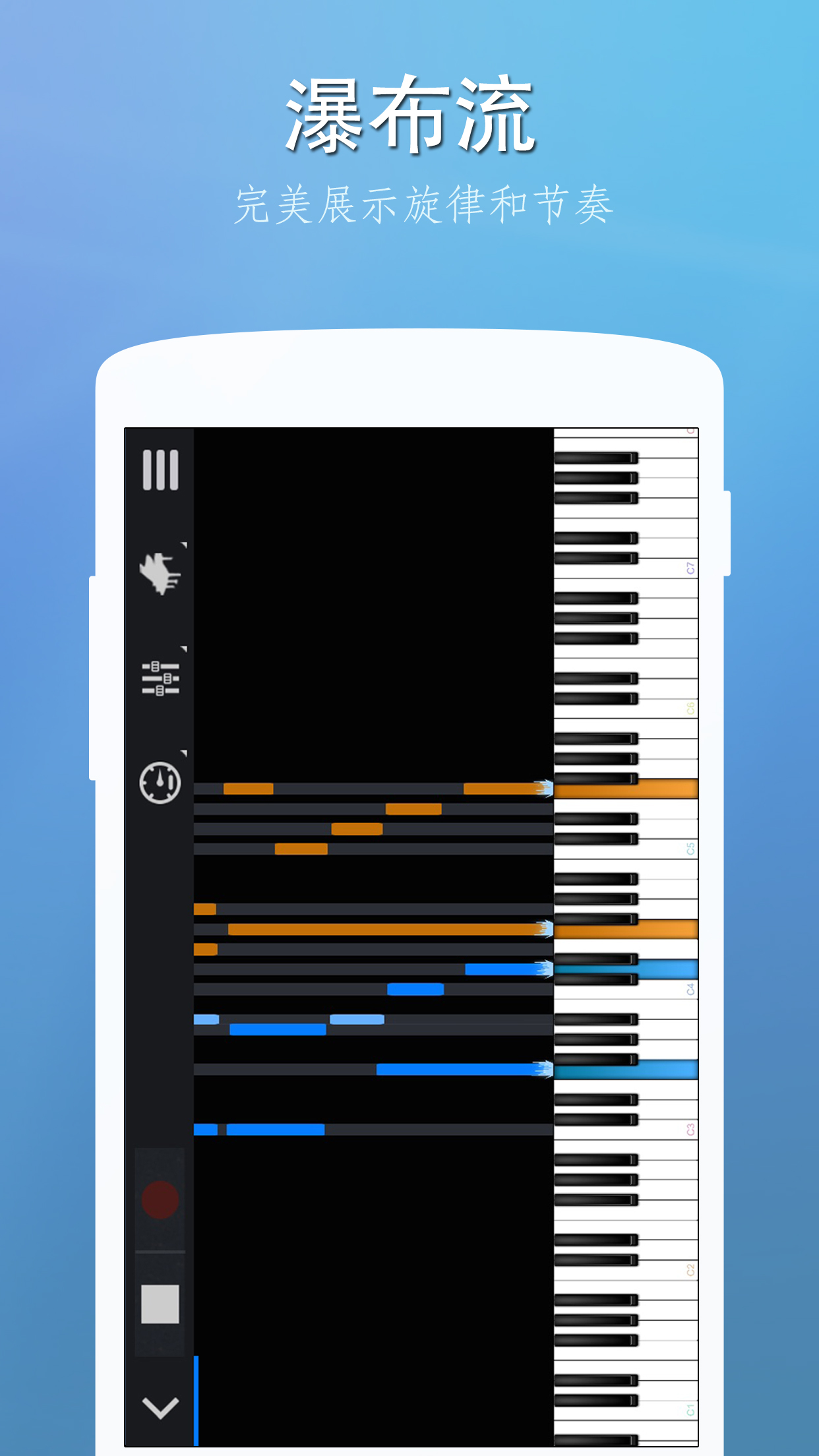 1、88 键全钢琴键盘。手机屏幕上就能显示出完整的琴键,手指按下去有反应,跟真琴差不多,宽度还能自己调节,适应不同手型,操作起来很灵活。