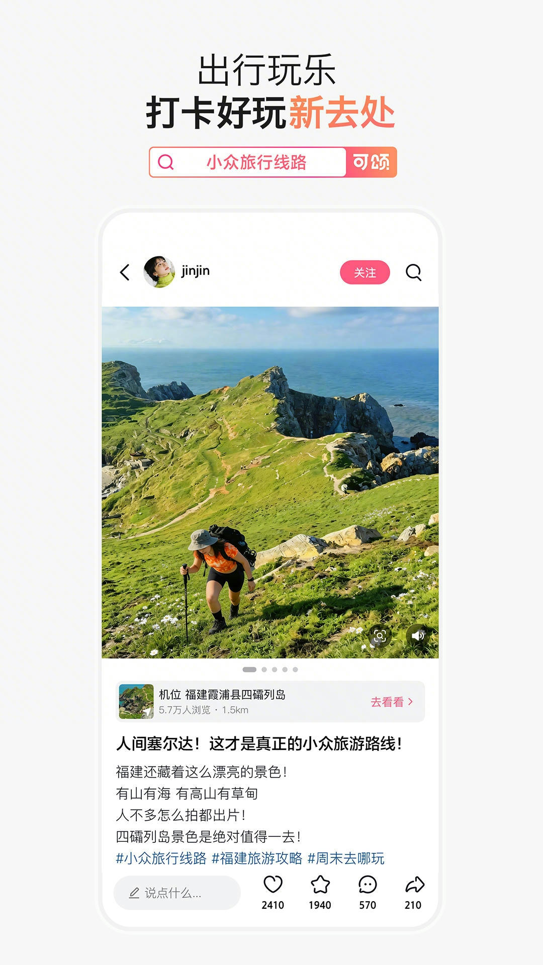 这是一款生活应用,分享真实可靠经验,普通人也能抄作业,一键搜索真实经验,出行玩乐打卡新去处,美食攻略轻松获得,地道美味不再难找,手工潮玩创造新乐趣,穿搭美妆参考他人,温暖相遇同频伙伴,记录日常点滴美好,生活变得更加有趣,快来下载体验一番,内容真实放心使用,界面简洁操作流畅,功能丰富满足需求。