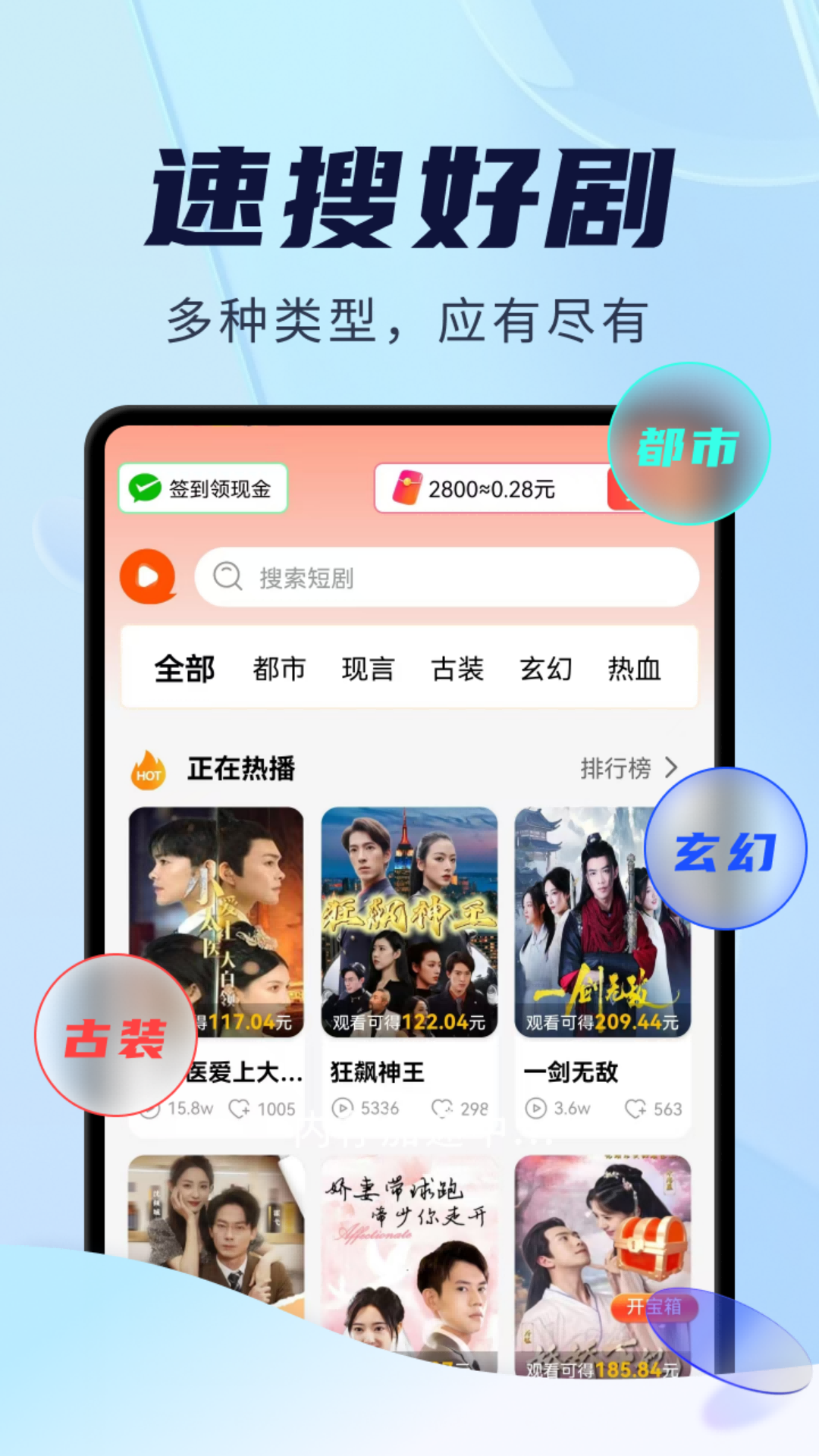 很多人追剧最烦的就是找资源,名字记不清、演员想不起,翻半天都找不到想看的那部。但在短剧太金里,这个问题根本不存在。它的搜索功能特别强大,关键词一输,相关剧集立马蹦出来,连错别字都能自动纠正。比如你记得剧情是“女主重生后踹了渣男嫁给了首富”,搜“重生 踹渣男”就能精准匹配。而且还有分类筛选,按热度、按更新、按类型随便挑,想找什么剧就像逛超市一样轻松。新手也能秒变追剧老手。