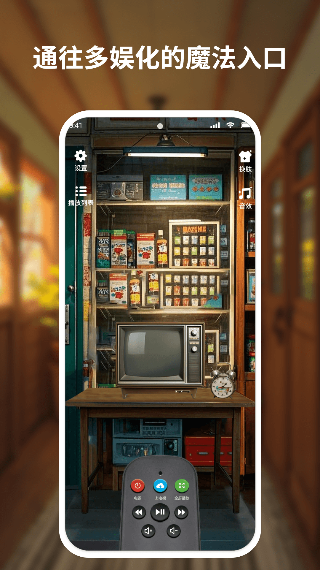打开复古小电视的第一眼,你就知道这不像现在的那些千篇一律的视频软件。整个界面模拟了一台上世纪八九十年代的老式显像管电视——圆角屏幕、旋钮调台、信号条晃动,甚至连开机时那一声“嗡”的启动音都复刻得惟妙惟肖。背景也不是冷冰冰的黑色,而是搭配了不同怀旧场景:有的像是放在老房子客厅的柜子上,旁边摆着搪瓷杯和收音机;有的则像是藏在阁楼角落,墙上挂着泛黄的照片和老唱片。这些细节不是为了装样子,而是真正在营造一种氛围:你看的不是一段视频,而是一场时光放映会。