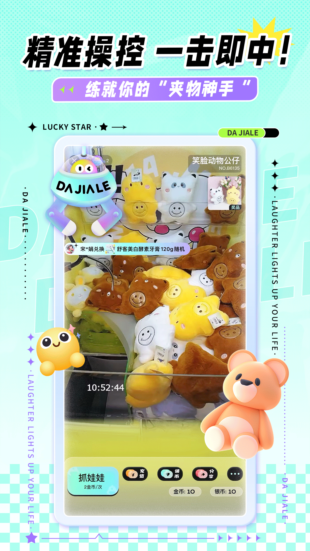 说真的,现在打开手机,不是刷短视频就是回消息,偶尔想干点不费脑子又特别开心的事,大夹乐就是那个“刚刚好”的存在。它不卷你的时间,不掏空你的钱包,也不考验你的人生阅历,就安安静静躺在你手机里,等你闲下来点开,咔嚓一夹,快乐就到手了。那种亲手操控、亲眼见证、亲收快递的踏实感,是算法推送永远给不了的。别犹豫了,赶紧去本站下载大夹乐,今天夹一只小猫,明天夹一对情侣杯,后天说不定就夹到人生第一只限量版潮玩——反正不花钱试错,花小钱买大乐,这波稳赚不赔。现在点击下载,新用户礼包马上到账,爪子已经饥渴难耐啦!