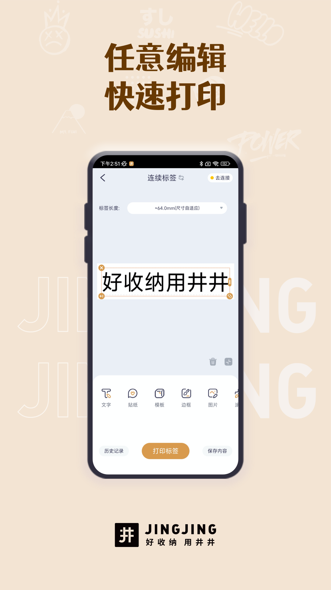 你试过早上急着出门,翻遍厨房找那瓶标着“陈醋”却写着“料酒”的酱油吗?井井标记直接终结这种尴尬。打开APP,点开蓝牙,自动识别并连接配套的便携热敏打印机(支持主流蓝牙标签机,比如兄弟PT系列、佳博等常见型号),选个模板,敲几个字,点打印——滋啦一声,一张清晰整齐的标签就吐出来了。整个过程比泡面煮熟还短,根本不用等驱动、不用装复杂软件、更不用折腾USB线。家里老人想给降压药分装盒贴个“早8点”,自己点几下就能搞定;孩子收拾乐高盒子,选个恐龙边框+手写字体,打印出来贴上,立马有了专属仪式感。