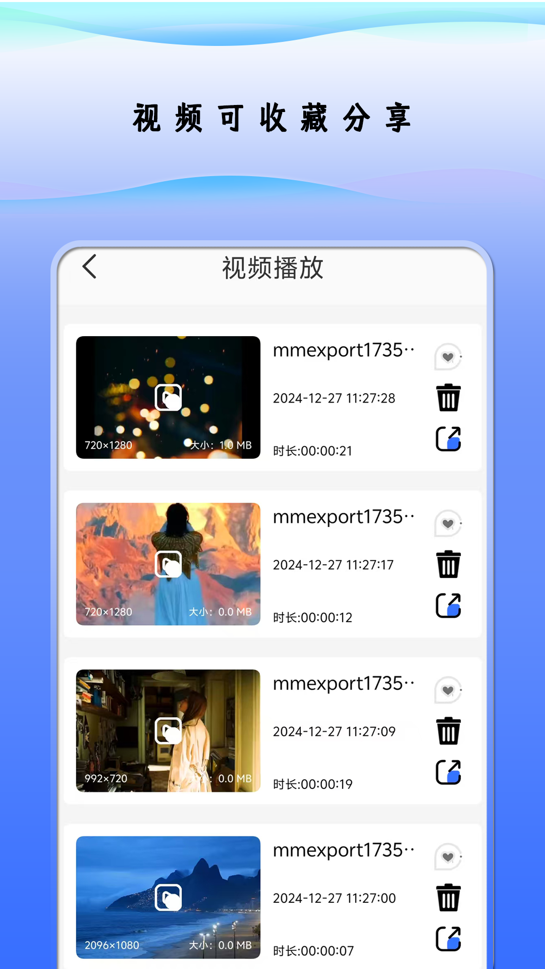 别看功能这么多,万能播放的界面设计走的是极简路线,整个操作逻辑非常直观。首页就是三大模块:视频、音频、图片,点哪个进哪个,没有任何花里胡哨的广告弹窗。所有的文件都清晰列出,支持搜索关键词快速定位,长按还能直接分享、删除、收藏,一步到位。就算是不太会用智能手机的长辈,教一遍也能自己上手。而且它的体积控制得很好,不会占用太多存储空间,后台运行也不怎么耗电,日常使用完全无负担。