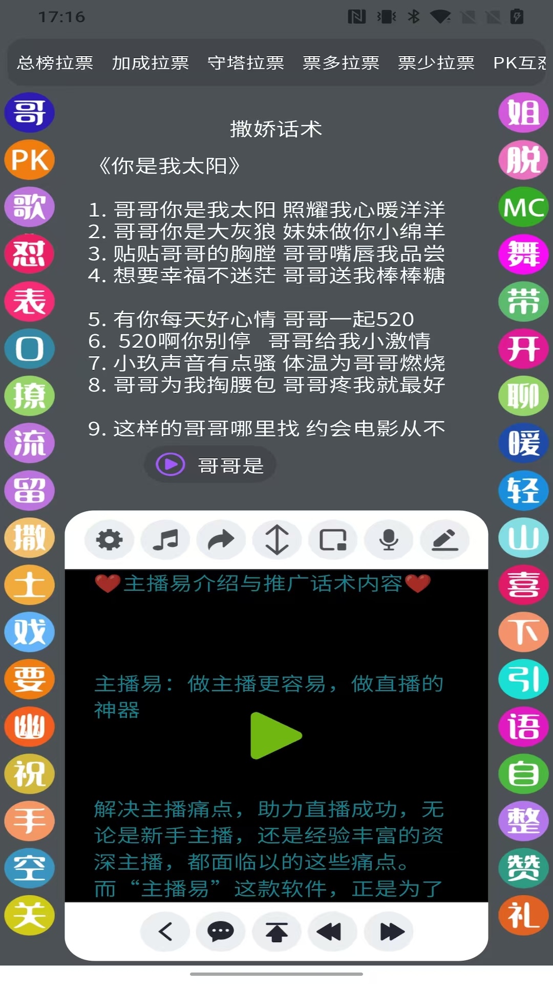很多主播最头疼的就是记不住流程和话术——开场怎么说?观众送礼怎么回应?冷场了怎么办?这些问题在播满易面前统统不是问题。它内置了海量的话术模板,覆盖了直播全过程:欢迎语、暖场互动、才艺展示引导、感谢礼物、下播告别……应有尽有。